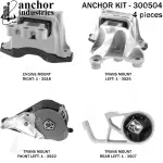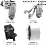- Description: Anchor 300504 Engine Mount KIT Each part of this kit is specifically Engineered and manufactured to meet or exceed OE standards to ensure perfect fit and function. Natural and SBR rubber provide maximum life and performance. Steel fasteners are heat treated grade 5 bolts. A special bonding agent is used to ensure a rubber to metal bond. Rubber material is mixed to specific Durometer, hardness. 12 Month Warranty.