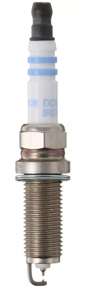 Bosch Iridium Spark Plugs are engineered to deliver both high performance and long life, representing the best of OE spark plug technology. Bosch Double Iridium Pin-to-Pin technology features 2 iridium-alloy electrodes – an iridium-alloy firing pin and iridium-alloy pin laser-welded onto the ground electrode. This design offers higher performance by allowing more efficient flame-kernel growth and up to 4 times longer life compared to standard copper spark plugs