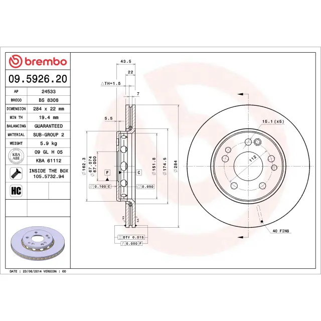 - Description: The Brembo brake disc is fully interchangeable with an Original Equipment brake disc. The control of the entire production cycle allows Brembo to offer brake discs with outstanding performance levels, reliability, durability and comfort in all conditions of use. All Brembo brake discs are accompanied by the ECE-R90 homologation.