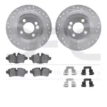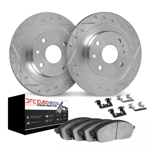 DFC Rotors-Drilled & Slotted-Silver w/ 5000 Euro Ceramic Brake Pads Incl Hdw