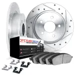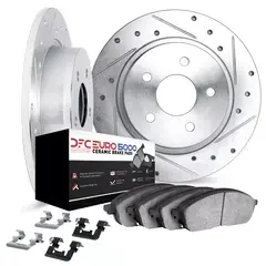 DFC Rotors-Drilled & Slotted-Silver w/ 5000 Euro Ceramic Brake Pads Incl Hdw