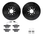DFC Rotors-Drilled & Slotted-Black w/ 5000 Euro Ceramic Brake Pads Incl Hdw