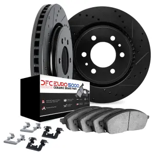 DFC Rotors-Drilled & Slotted-Black w/ 5000 Euro Ceramic Brake Pads Incl Hdw