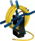 50 ft. 300 PSI 3/8" air hose. All brass 1/4" NPT 360 deg. swivel valve. Mounts to ceiling, wall or floor. Easy crank handle with spring tension brake. Steel frame with baked enamel finish. Reel can hold up to 100 feet of 3/8" hose.