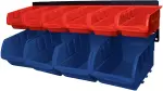 For garage, home, office or garden. Heavy duty metal bracket. Mountable directly to wall studs. Removable bins are convenient and easily accessible. Includes screw and wall anchors. Powder coated steel resists corrosion. Includes 6 small bi